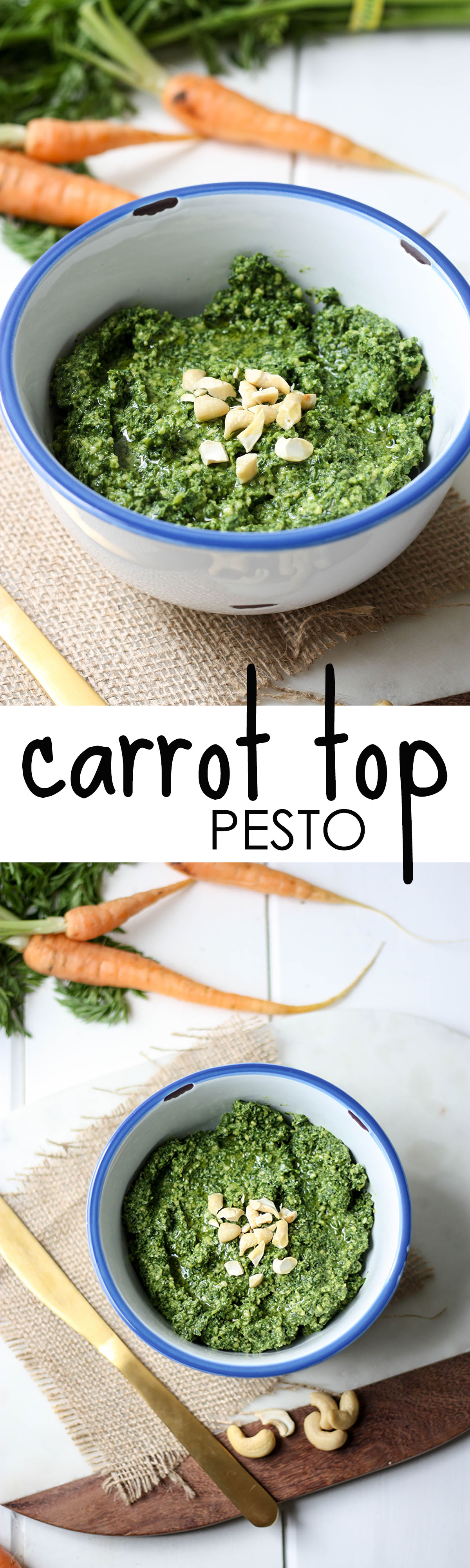 STOP! Don't chop off your carrots tops and throw them away! Instead, make this super easy, and super delicious carrot top pesto. This pesto will change your life, and the way you look at the tops of leafy greens forever!