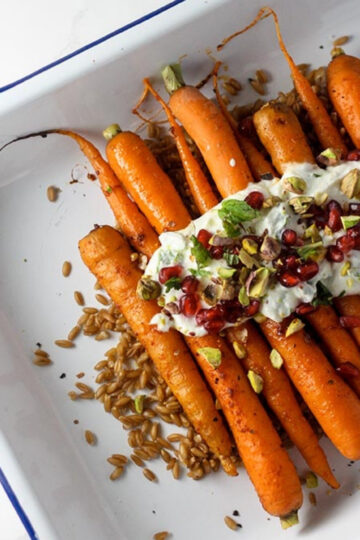 4. Once cooked, remove from the oven and sprinkle over the feta cheese and pepitas and serve warm.