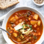 Serve with grated parmesan, extra salt and pepper and toast or fresh bread and butter.