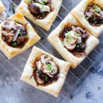 This mushroom tart is a simple, elegant and absolutely delicious appetizer for your next party! Made with a puff pastry base, this tart is simple to put together, can be made ahead of time and is bursting with fresh flavors! Make this appetizer for your friends at your next party, it'll be an absolute hit!